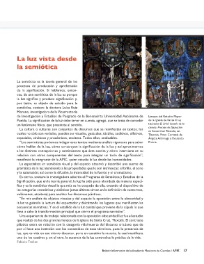 Puebla. La significación de la luz debe tener en cuenta, agregó, que se trata de concebir
