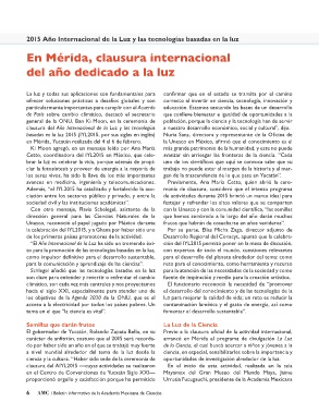 Cetto, coordinadora del IYL2015 en México, que cele- uno de los científicos que aquí se convoca sabe que su