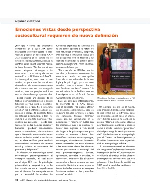 análisis, propone que las emociones fuera de las coordenadas de la bio- cial”, dijo la doctora en antropología