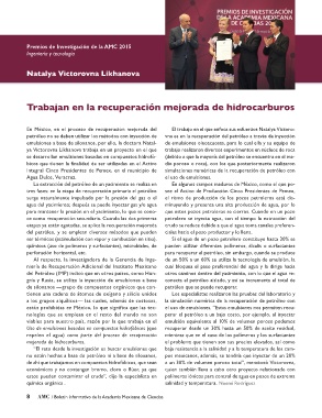 En México, en el proceso de recuperación mejorada del El trabajo en el que enfoca sus esfuerzos Natalya Victoro-