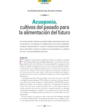 en la solución del problema de la generación de alimentos. La acuaponia consis-