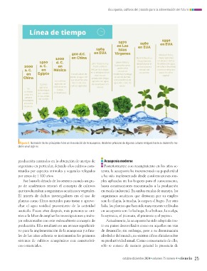 ■ Figura 2. Ilustración de los principales hitos en la evolución de la acuaponia, desde las prácticas de algunas culturas antiguas hasta su desarrollo mo-