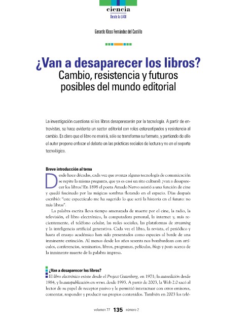 La investigación cuestiona si los libros desaparecerán por la tecnología. A partir de en-
