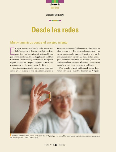 Las vitaminas, minerales y otros compuestos pre- Para calcular la edad biológica, el equipo de in-