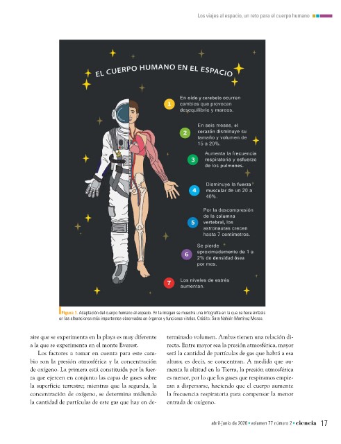 ■Figura 1. Adaptación del cuerpo humano al espacio. En la imagen se muestra una infografía en la que se hace énfasis