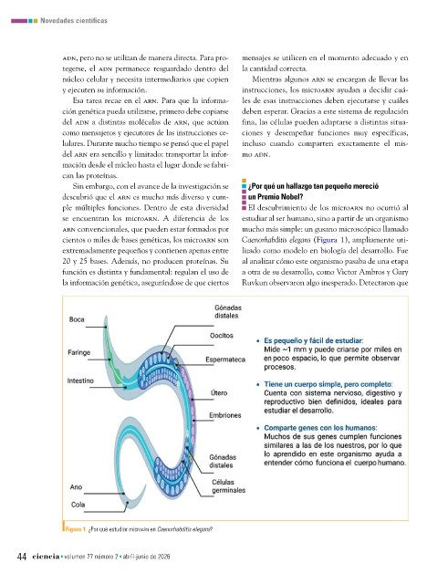 cientos o miles de bases genéticas, los microarn son Caenorhabditis elegans (Figura 1), ampliamente uti-