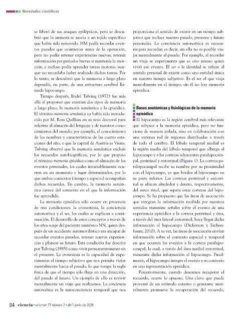 rimentar el tiempo subjetivo que nos permite viajar mente, el hipocampo integra el evento y su contexto
