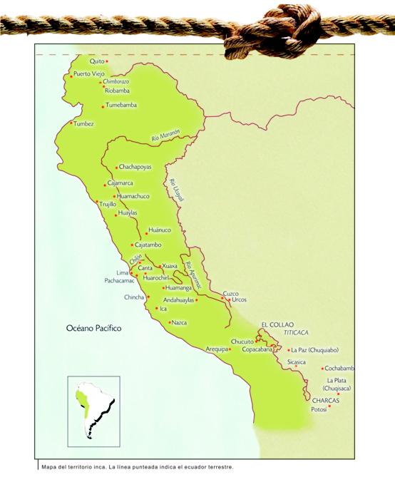 El imperio inca se extendió desde el Ecuador hasta la región central de Chile (véase mapa). El corazón del imperio estaba en Cuzco, en la zona andina del sur de Perú. Hacia 1532 la guerra entre dos hermanos y enemigos alcanzaba su máximo: los hijos de Huayna Capac, Atahualpa, instalado en Quito, y Huáscar, en Cuzco, se disputaban las tierras que su padre había dividido al momento de morir. Esta discordia entre hermanos precipitó la división del imperio inca y la caída de su civilización. Durante ese mismo año, el español Francisco Pizarro desembarcó en la ribera del Ecuador, con planes de conquista. Esto intensificó la debilidad del imperio inca, aunque el final de la conquista no se dio sino después de años de guerra con el último hijo de Huayna Capac, de nombre Manco Capac.