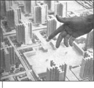 | Le Corbusier con la maqueta del Plan Voisin, París (1925). Imagen reproducida de la película L'architecture d'aujourd'hui, de Pierre Chena (1931). La utilización de dibujos, esquemas y modelos tridimensionales o maquetas ha sido a lo largo de la historia uno de los procesos para generar desde la teoría y la práctica de la arquitectura propuestas visionarias y modelos de utopías, lo mismo que elementos que pueden ser comprobados experimentalmente antes de su construcción (Smith, 2004). |