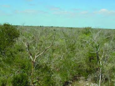 Aspecto de la selva baja caducifolia del Parque Nacional Dzibilchaltún durante la estación seca (foto: Gustavo Vargas, 2003). |