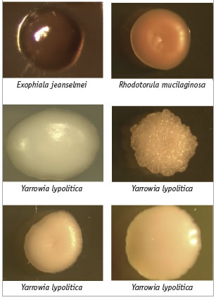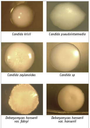 Cuadro 5. Aspecto colonial de algunos ejemplares de la Colección de Levaduras Marinas del cibnor que ilustran no sólo la diversidad de formas, sino también de su aspecto, lo cual sugiere que podrían tener diferentes aplicaciones y usos industriales.