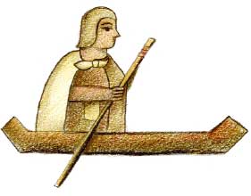 La cuarta escena (Figura 5) muestra una vista seguramente de Tenochtitlan, en la que aparecen cuatro grandes damas, lujosamente ataviadas, mirando desde la azotea de sus casas, mientras que otras tres, acompañadas por sus criados, navegan en canoas, posiblemente en actitud de huida.