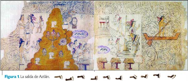La primera escena de esta sección es de gran importancia para la historia del México antiguo, ya que detalla el momento clave de la gran decisión: abandonar su tierra (Figura 1). La lámina muestra los elementos principales mencionados en varias fuentes, como la calidad insular de su tierra de origen, la presencia de un cerro en la isla, la potestad de Huitzilopochtli sobre el grupo, la controversia que seguramente ocurrió entre los pobladores antes de tomar la decisión de abandonar la isla, seguramente Aztlán.
