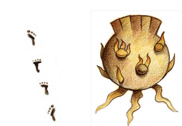 Sus pies aparecen desnudos; est á peinada a la manera tradicional de las mujeres en el México antiguo, que consistía en cabello largo colocado hacia atrás, circularmente en amplia curva sobre la nuca y después recogido hacia delante, terminado en una especie de “cornezuelos” que sobresalen de la frente. También podía ser trenzado y enredado con el mismo pelo a la altura de la frente, es decir que pudiera ser que este peinado alto estuviera formado de dos trenzas que se ajustan a la altura de la cabeza dando un aspecto de “cuernos” o puntas levantadas. Podemos decir que era un peinado a la manera clásica o tradicional de las mujeres mexicas.