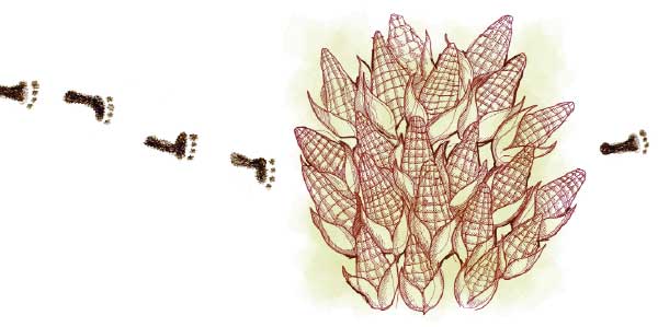 Por último, en el códice están dibujadas cuerdas diversas y huellas de pies o xocpalmachiyotl que llevan a diversos sitios y personajes. De Veinte Mazorcas parten y regresan huellas, al igual que en otras partes del documento, indicando movimiento de personas de un lugar a otro o representando sus caminos. Cabe señalar que estas últimas no son contemporáneas, ya que el tamaño, el diseño y la perfección del trazo varían. La mayoría se encuentra a la vista, pero existen otras que fueron borradas al poner trazos nuevos sobre ellas.