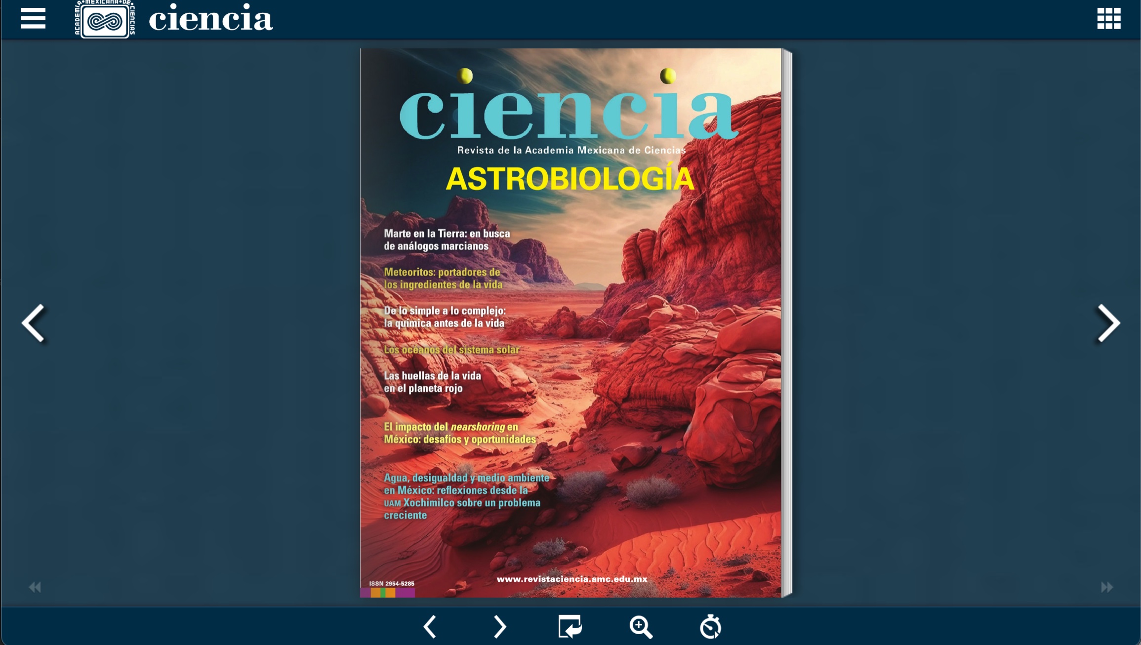 Queridos lectores: Muy bienvenidos a este nuevo número de la revista Ciencia. En esta ocasión la sección temática está dedicada a la astrobiología, área de estudio multidisciplinaria que incluye conocimientos de astronomía, especializada en el estudio de la génesis y evolución de galaxias y sistemas planetarios; la biología, que se ocupa del origen y evolución de los seres vivos; la geología, que investiga las características de los planetas, y la química, que estudia cómo se sintetizan las moléculas que forman a los seres vivos.