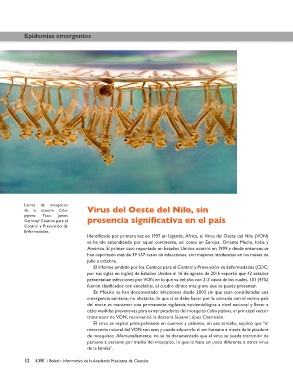 de mosquitos. Afortunadamente, no se ha documentado que el virus se pueda transmitir de