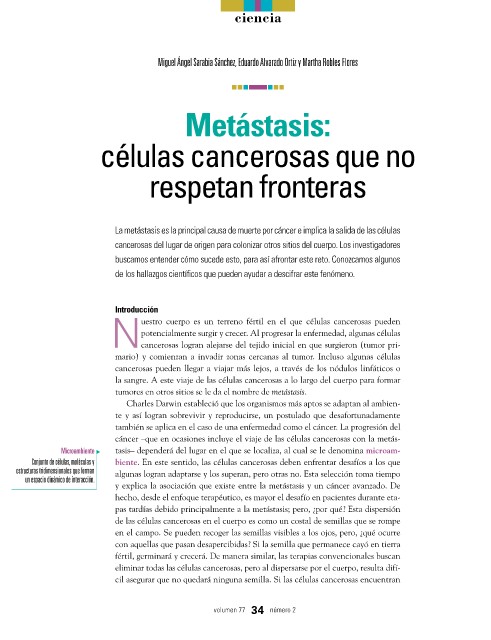 cáncer –que en ocasiones incluye el viaje de las células cancerosas con la metás-