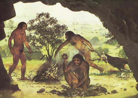 Se piensa que los homínidos antecesores del Homo sapiens evolucionaron hacia formas más eficaces porque fueron capaces de cocinar los alimentos para volverlos más digeribles. Dicen los que saben que simplemente al cocinar un alimento éste incrementa un 25 por ciento su capacidad nutricional. Antes de emprender este proceso de cocción, los antecesores del hombre gastaban horas y horas para alimentarse consumiendo raíces, frutos silvestres y la carne cruda de los animales; también tardaban horas y horas para digerirla. Con la intervención de la cocción -asando o cociendo el alimento- se redujo el tiempo de ingestión y se mejoró la calidad de la digestión. Por información de grupos étnicos actuales sabemos que hay varias maneras de cocer los alimentos sin que necesariamente se empleen ollas de cerámica o de metal fabricadas para esos fines. Es posible cocinar al vapor en hornos excavados en la tierra, donde se hace fuego sobre piedras calientes y sobre una cama de ramas y hojas se colocan los alimentos a cocer. Se cubre todo con hojas y se pone tierra encima. Otra manera de cocer al vapor es utilizando las vísceras (estómago o intestinos) de los propios animales como recipientes, amarradas a alguna estructura de madera encima del fuego, aunque no directamente; así se cuece también al vapor. Paralelamente a esos procesos, con seguridad se amplió la dieta y mejoró la vida de los ancestros al liberar el tiempo para pensar y realizar proyectos.