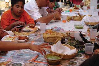 En la comida cotidiana hay mayor libertad para seleccionar materiales ajenos a la tradición y emplear nuevas tecnologías. Los menús se diseñan dependiendo del recurso disponible, porque antes -hace 20 años- nadie compraba nada; todo se producía, se cazaba, se pescaba o se recolectaba ahí mismo. En las fiestas familiares en las que se festejan los rituales de paso -bautizos, primeras comuniones, bodas, sepelios- se ofrece comida a los vecinos, a la familia, a los invitados, y ésta puede variar dependiendo de la economía familiar y mucho del gusto compartido. Pero en la fiesta religiosa se invita a más personas de la comunidad, y la comida que se ofrece en las casas de familia siempre es la misma: mole con pollo o guajolote, tamales de frijol, arroz con jitomate, salsa de chile, tortillas y, de beber, pulque, cerveza, refrescos para las mujeres y los niños y trago fuerte para los hombres. La comida, en este caso, es un ritual en sí misma, porque corresponde a una expresión normada por reglas específicas, obedece a un conjunto de principios técnicos que supuestamente garantizan su eficacia, demostrada empíricamente por haberse practicado en forma reiterada por generaciones. Es la repetición cíclica que da sentido al tiempo. Los rituales son siempre iguales, pero siempre diferentes; la acción será nueva, las festividades-comidas serán siempre iguales, pero siempre diferentes. Porque como la poesía, la comida "... se rehace en cada repetición, que se refunde en cada una de sus variantes, las cuales viven y se propagan en ondas de carácter colectivo. La esencia de lo tradicional está, pues [...] en la reelaboración... por medio de las variantes" (Menéndez Pidal, 1939). En suma, "...el ser humano puede reunir en un todo creador la continuidad y el cambio, la tradición y su obligada recreación. En este sentido, la conciencia humana no es nada más que la extensa gama de posibilidades de correr incesantemente fuera de y mucho más allá de sí mismo... concretar mínimamente la forma característica de estar en el mundo" (Duch, 2005).