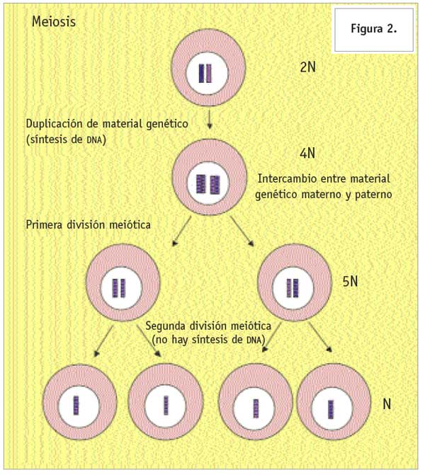 Las células germinales primordiales son las precursoras de los gametos femeninos y masculinos, óvulo y espermatozoides, respectivamente. La relevancia biológica de este tipo celular se hace evidente cuando pensamos que son estas células las que nos permiten preservar a las especies e incrementar la variabilidad genética de las mismas, mediante la formación de nuevos individuos. Las células germinales primordiales son las únicas que llevan a cabo un proceso de división celular muy particular conocido como meiosis. Las células somáticas (todas las que forman el organismo, excepto los óvulos y espermatozoides) tienen dos copias del genoma (son diploides): una copia de origen materno y la otra de origen paterno. Para dividirse, cada célula duplica previamente su material genético, por lo que transitoriamente tiene cuatro copias de material genético (es tetraploide). Finalmente, cuando la célula se divide en dos, cada célula somática “hija” se queda con la mitad del material genético, por lo que será nuevamente diploide. Esto se conoce como mitosis. En contraste, la meiosis consiste en formar células con una sola copia del genoma (haploides) a partir de una célula diploide. La meiosis consta de dos fases sucesivas (Figura 2). En la primera fase, una célula germinal diploide que inicia la meiosis también duplica su material genético, convirtiéndose transitoriamente en tetraploide, y al dividirse da origen a dos células diploides. Esto es similar a lo que ocurre para la división mitótica; sin embargo, durante la primera fase de la meiosis ocurre además un evento particular de este proceso previo a la división celular: el intercambio de segmentos equivalentes entre las copias homólogas de los cromosomas. Este evento da lugar a un incremento en la variabilidad genética de los gametos a formar, pues mezcla características de origen paterno y materno. Las células que salen de la primera división meiótica, diploides, entran en la segunda fase de la meiosis, caracterizada por la división de su material genético seguida de una división celular, sin que haya síntesis previa de material genético, por lo que al final cada célula posee una sola copia del genoma (es haploide). Así que por cada célula germinal diploide que inicie la meiosis deberán obtenerse cuatro células haploides. En el caso de la línea germinal masculina, cada célula germinal diploide origina cuatro espermatozoides funcionales. En contraste, en la línea germinal femenina, sólo una de las cuatro células haploides formadas da lugar a un ovocito funcional, pues las otras tres ceden todos sus nutrientes a ésta. ¿Cómo es que dentro de todas las células que constituyen a un individuo se determina cuales contribuirán a la formación de las células germinales primordiales? ¿Y cómo se determina su diferenciación en ovocitos o espermatozoides?