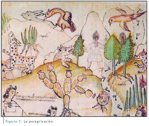 Le siguen a ésta, una serie de 12 escenas más, en las que se narra detalladamente cada una de las etapas de la peregrinación, las fechas de estancia en los diferentes puntos que van tocando los peregrinos, las rutas tomadas, la topografía y la orografía; la flora y la fauna de la localidad; la vida cotidiana, los festejos del “fuego nuevo” y sobre todo los sucesos de carácter bélico.