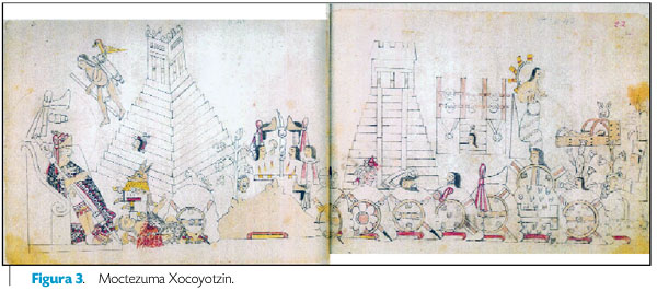 La última escena de esta parte muestra a Moctezuma Xocoyotzin (1502-1520), noveno y último señor de la dinastía tenochca antes de la caída del señorío como resultado de la conquista española (Figura 3).