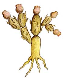 Detrás del personaje emerge un nopal sembrado sobre una piedra, topónimo de y símbolo glorioso de Tenochtitlan; sobre éste, a su vez, se incluyó el glifo antropónimo de Acamapichtli (“puñado de cañas”), ilustrado por medio de una mano que sujeta fuertemente tres cañas o flechas, de donde deriva su nombre.