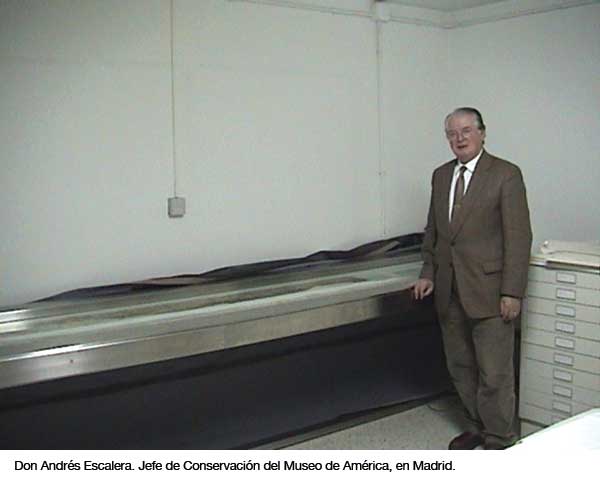 La historia que yo puedo narrar comienza en el otoño de 1996, cuando viajé a Madrid para conocer el manuscrito original, después de haberlo estudiado durante más de diez años, y tener escrita lo que entonces creí que sería la versión definitiva de mi tesis de doctorado. Sentía un profundo entusiasmo al pensar que pronto lo vería. Había hablado por teléfono unas semanas antes con la directora del Museo de América, la doctora Paz Cabello, quien me había autorizado a consultar el original. A mi llegada a sus oficinas, con cordialidad me atendió y le pidió al subdirector del museo, Félix Jiménez Villalba, que llamara al jefe de conservación, Andrés Escalera Ureña. Creo que el haber conocido a don Andrés fue uno de los puntos esenciales para mi comprensión sobre el códice desde otra perspectiva, por lo que hoy me parece fundamental comunicar las enseñanzas de este gran profesional.