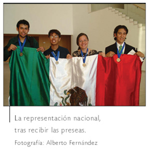 La selección mexicana obtuvo cuatro medallas de bronce durante su participación en la XI Olimpiada Iberoamericana de Química, llevada a cabo en septiembre pasado en la Universidad de Aveiro, en Portugal. Denise Haydé Cabrera Murguía, de Michoacán; Alberto Fernández Alarcón, de Veracruz; Juan Iván Gómez Peralta, de Guerrero, y José Antonio Rivera Mayorga, de Jalisco, fueron los alumnos de bachillerato que conquistaron las preseas. Los representantes de nuestro país, que fueron ganadores de la Olimpiada Nacional de Química, organizada por la AMC, se enfrentaron a estudiantes de Argentina, Bolivia, Brasil, Chile, Colombia, Costa Rica, Cuba, España, Perú, Portugal, Uruguay y Venezuela.